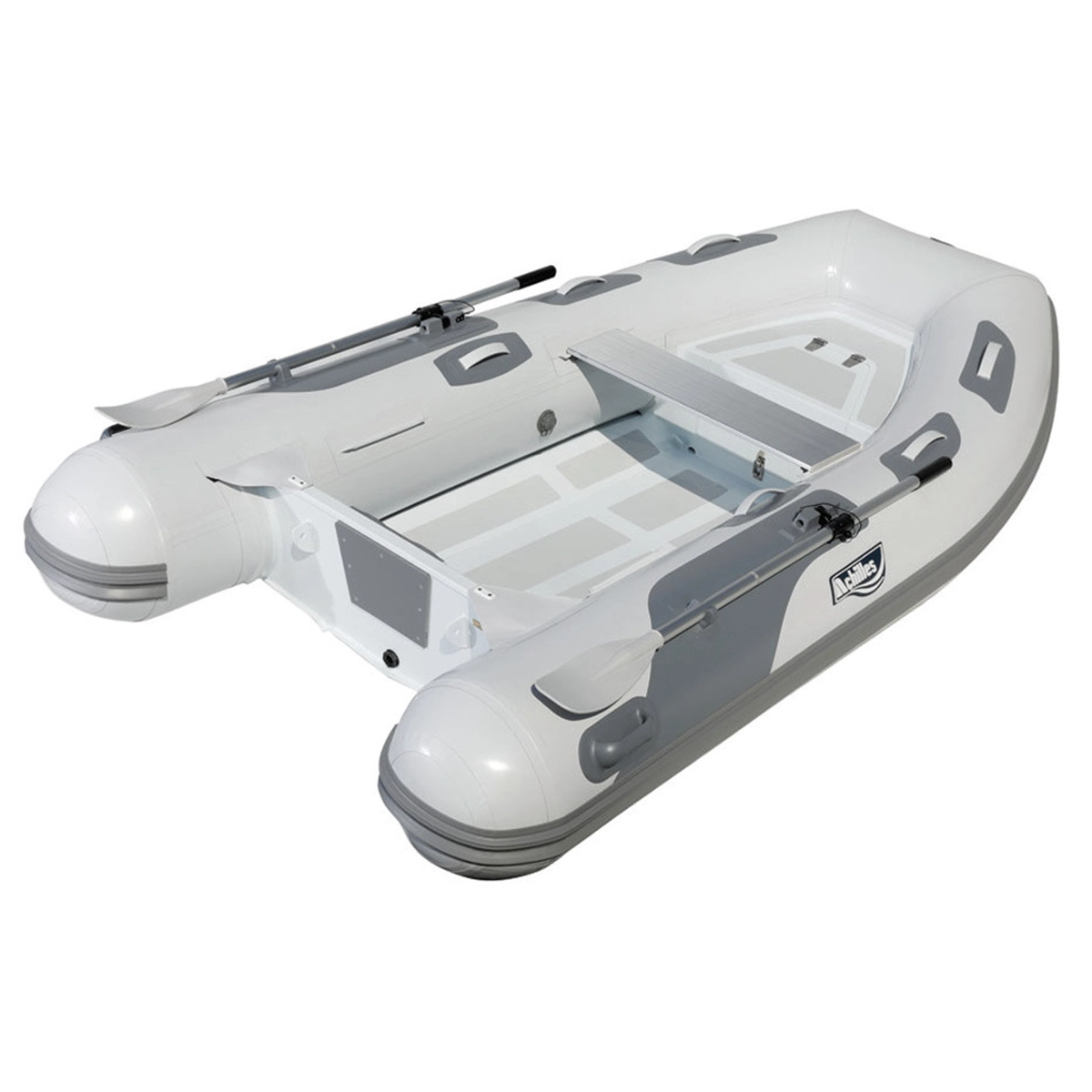 The package is described as including Removable aluminum rowing seat, Aluminum breakdown oars with locking system, Foot pump, and Maintenance kit. This is useful when checking whether the listing already covers the everyday tender accessories you expect to receive.