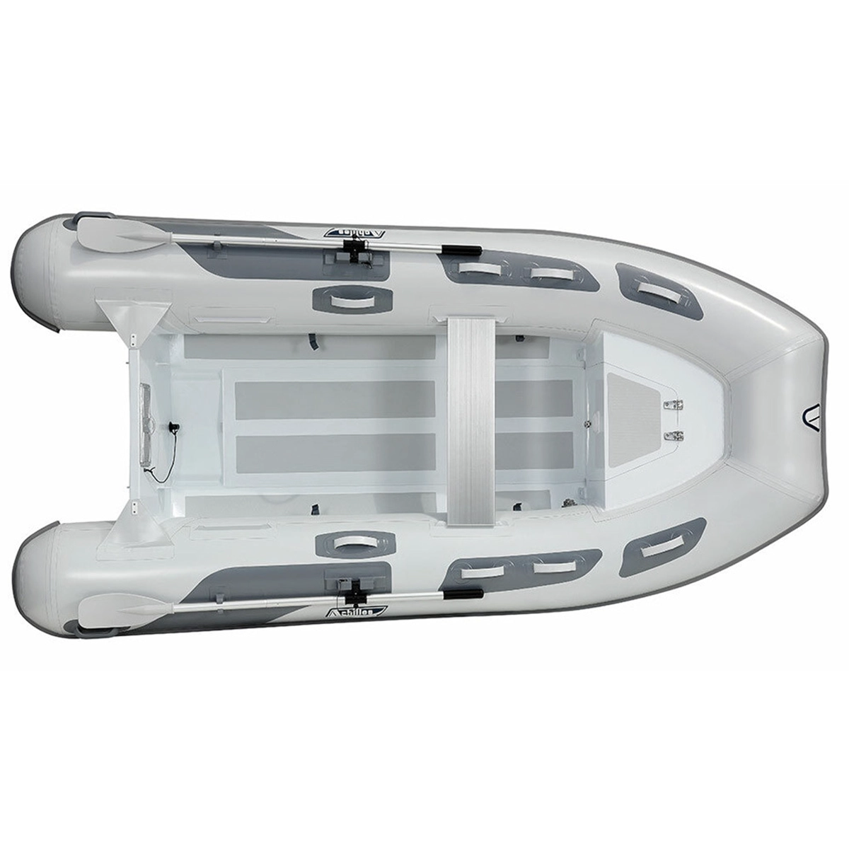 The Achilles HB-270AX Inflatable Boat is a deluxe aluminum-hull RIB designed for durability, smart deck layout, and efficient performance. Featuring a full deck liner and bow locker, it’s ideal for beach landings and compact tender use.