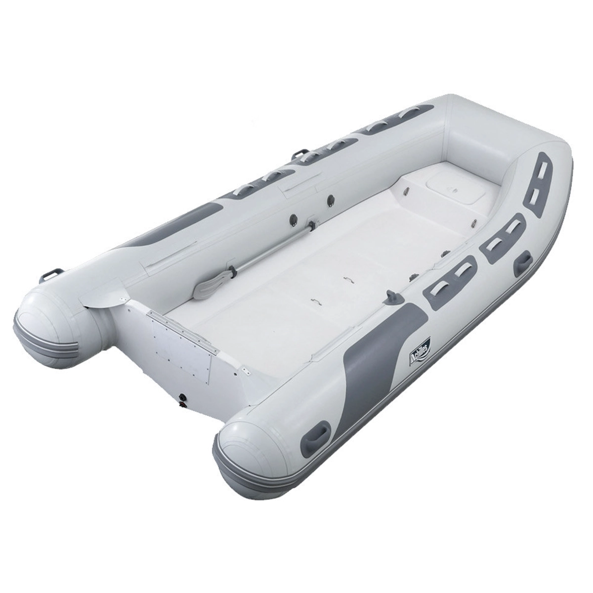 Achilles HB-385DX Inflatable Boat is designed as a rigid inflatable tender for general recreational boating and tender duties. The published details list Hypalon (CSM), 7 persons or 1,790 lbs, and a 40hp Long Shaft limit.