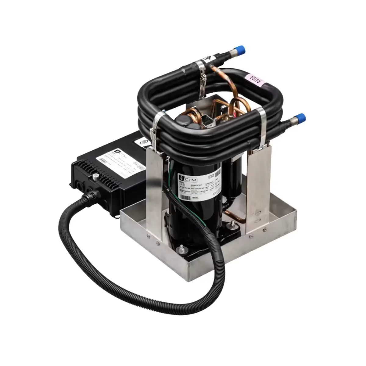 CTM CX-10 10000 BTU Marine Split A/C Condenser 115V is a marine split condensing unit designed for 100-120V, 50/60Hz operation and R410A refrigerant. This 10,000 BTU model is built for buyers who need a split-system marine A/C condenser with corrosion-resistant construction, including titanium circulating coils, stainless steel bolts, and a stainless steel structural pan.