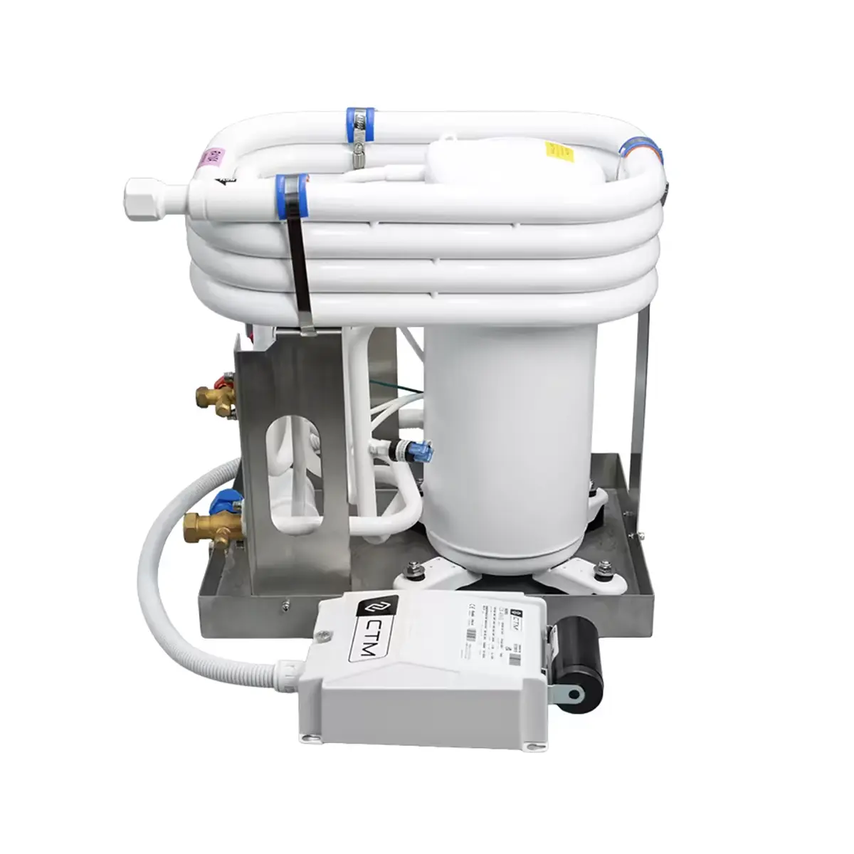 - Titanium circulating coils are identified for long-lasting use in marine environments.