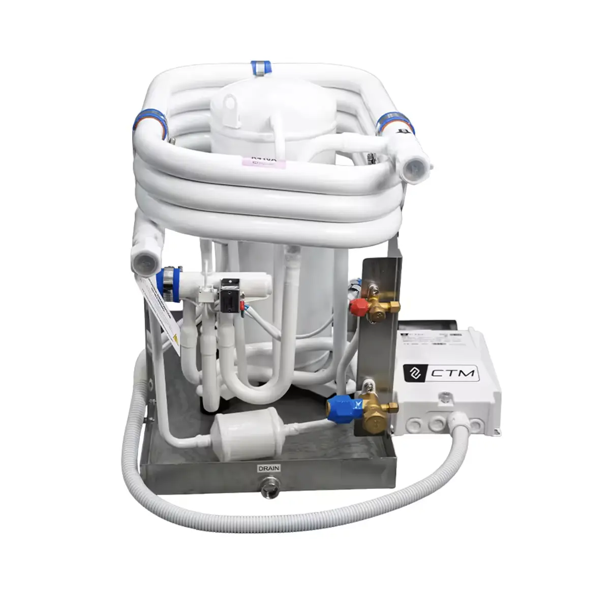 CTM CX-48HS 48000 BTU Marine Split A/C Condenser 230V is a marine split condensing unit with soft start and R410A refrigerant. Built for 208-240V, 50/60Hz operation, it features titanium circulating coils, stainless steel hardware, corrosion-resistant construction, and compatibility with several major marine A/C control platforms.