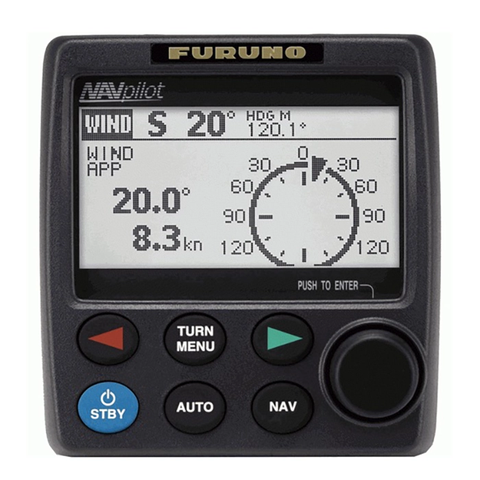 Furuno NavPilot 711 Autopilot Control Unit is a dedicated autopilot control head with High-Contrast Silver Bright LCD and direct access to steering modes, heading data, and system status. It is intended for compatible Furuno NavPilot installations at the main helm or an added station.
