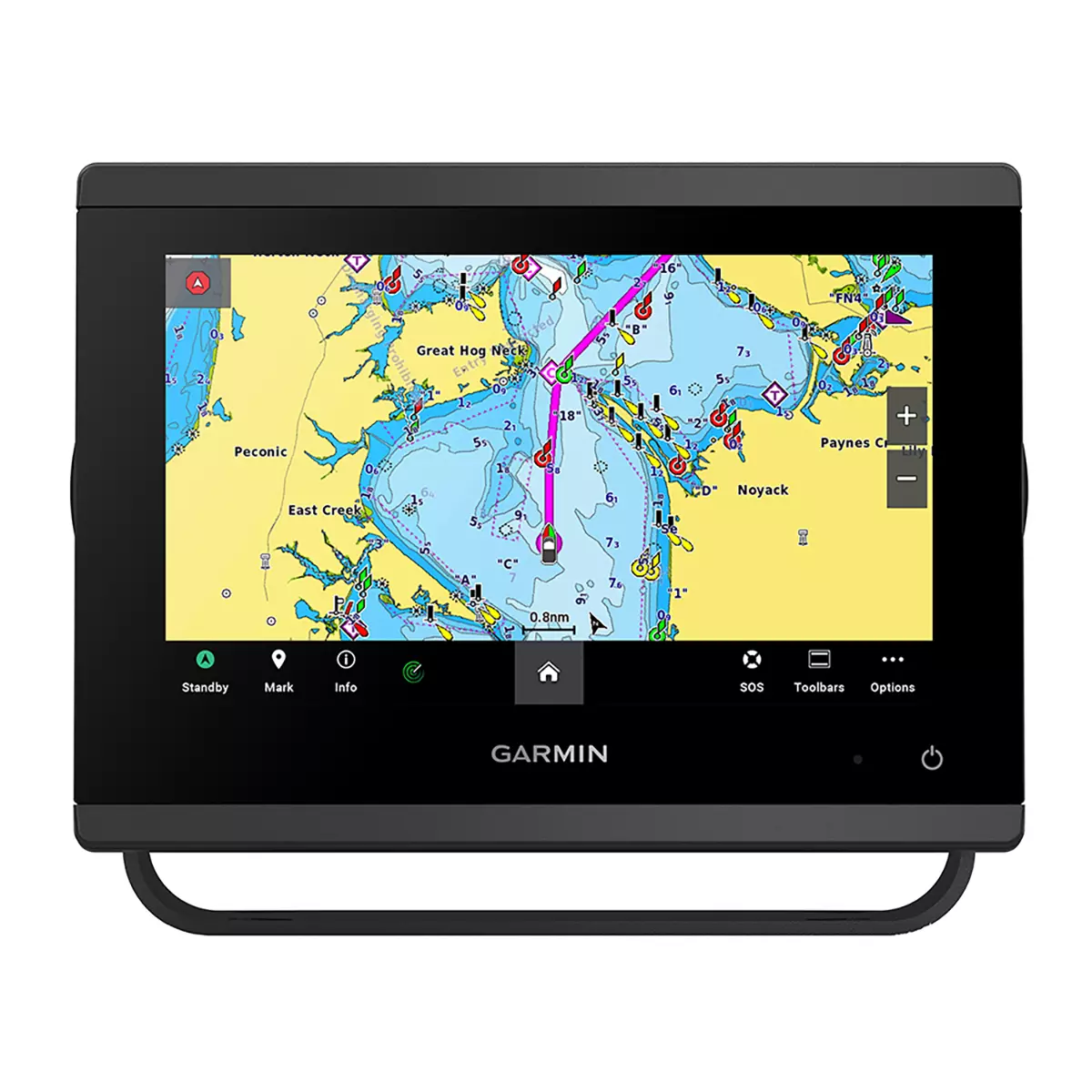 - Chart ecosystem: Preloaded Garmin Navionics+ā¢. This supports route planning and chart management using the chart platform available for the model.