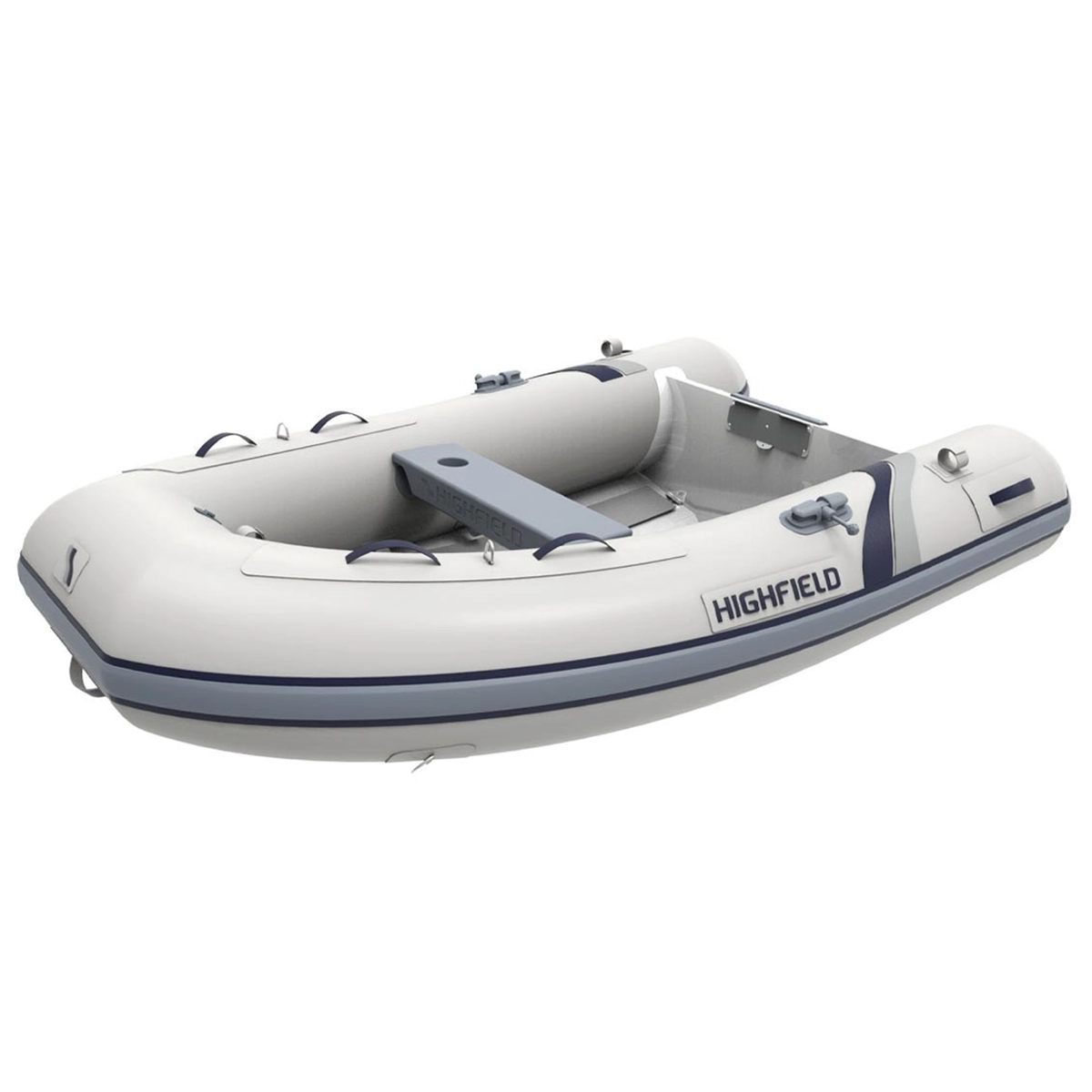 The Highfield Ultralite 240 Large Tube RIB PVC is a lightweight aluminum-hull inflatable tender with oversized tubes, offering excellent stability, easy handling, and efficient performance with small outboards.