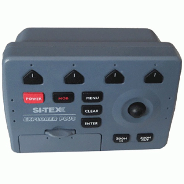 SI-TEX Explorer Plus Chartplotter System is a control unit that turns a VGA monitor into a C-MAP electronic charting system with dual chart slots, Guardian Grounding Alarm, and flexible helm mounting.