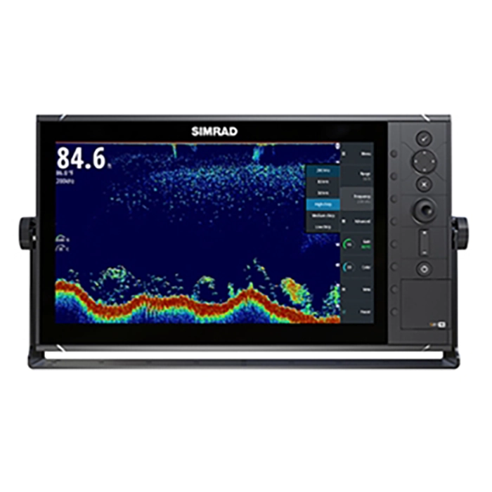 Simrad S2016 CHIRP Fishfinder is a dedicated 16-inch sonar display with CHIRP and Broadband Sonar, keypad control, Ethernet and NMEA networking, and sonar log recording.