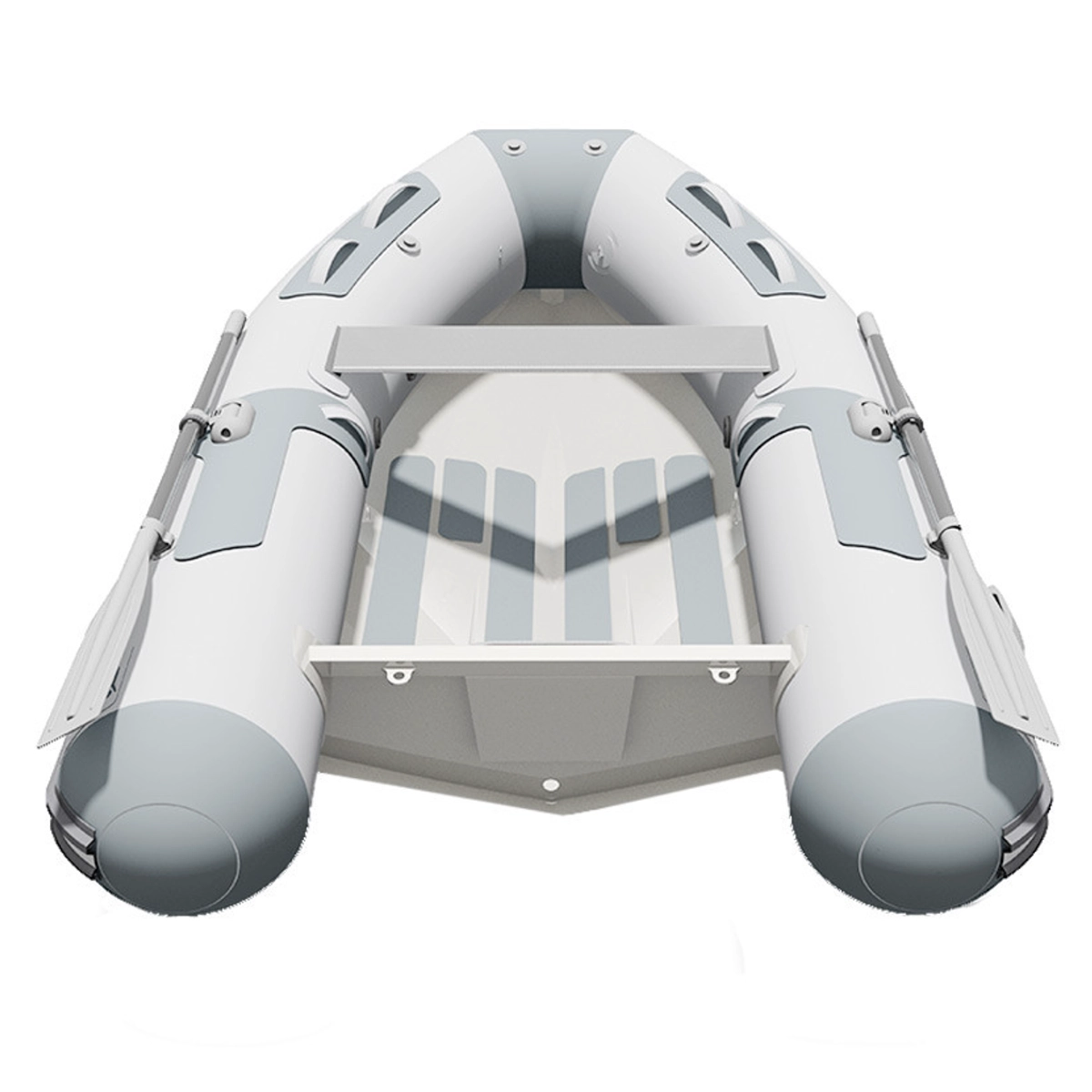 This rib combines Aluminum V-Hull and Strongan 1200 PVC, 1100 dtx in its published construction details. Those details, including 16" tubes and 3 air chambers, help explain its balance of stability, durability, and ride control.